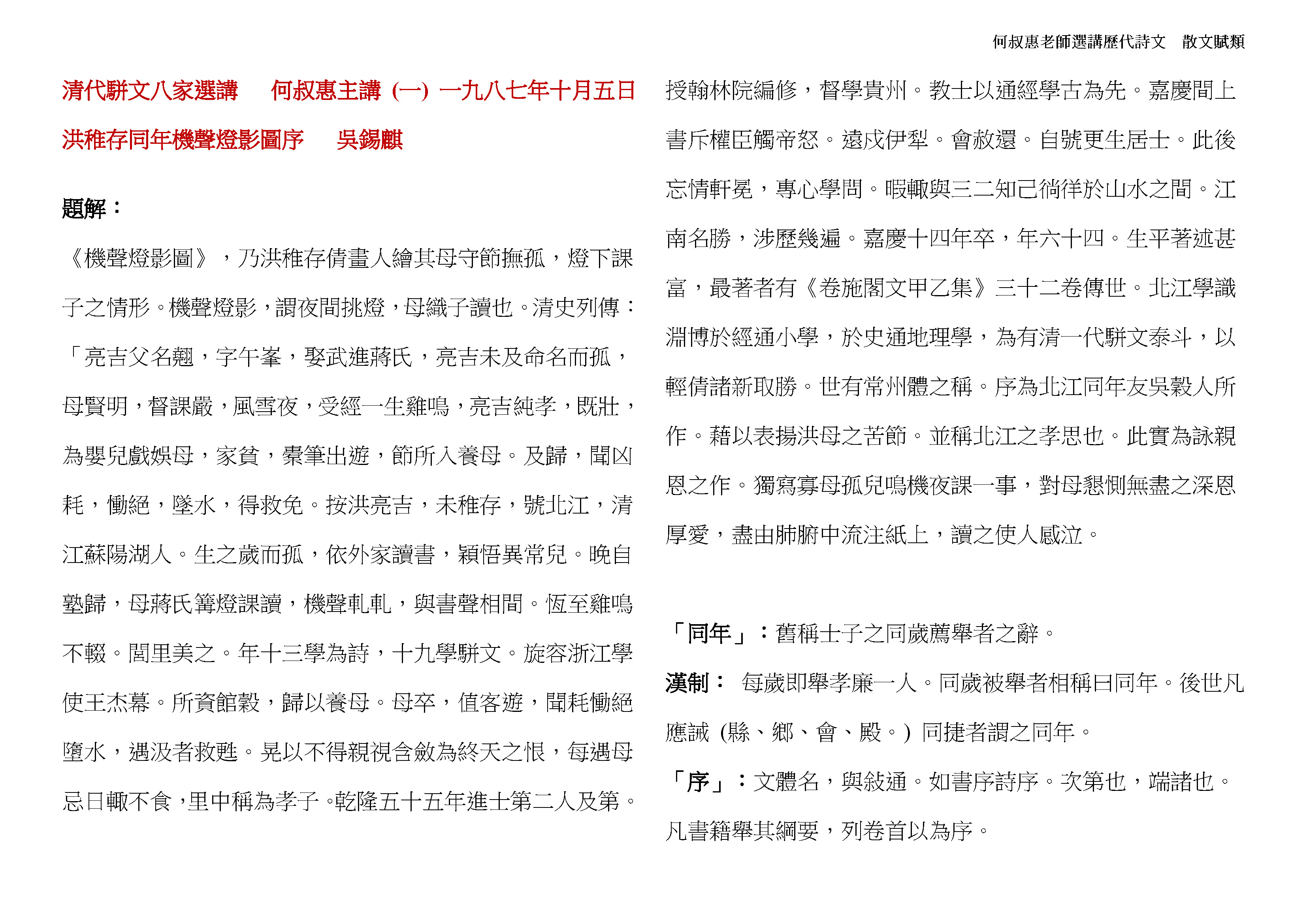 主頁 > 經典教材 > 電子教材 > 何叔惠老師選講歷代詩文 > 洪稚存同年機聲燈影圖序 文字版
