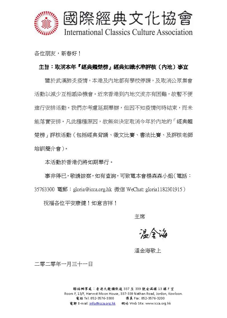 活動取消通知 –『經典翹楚榜』系列(內地)事宜