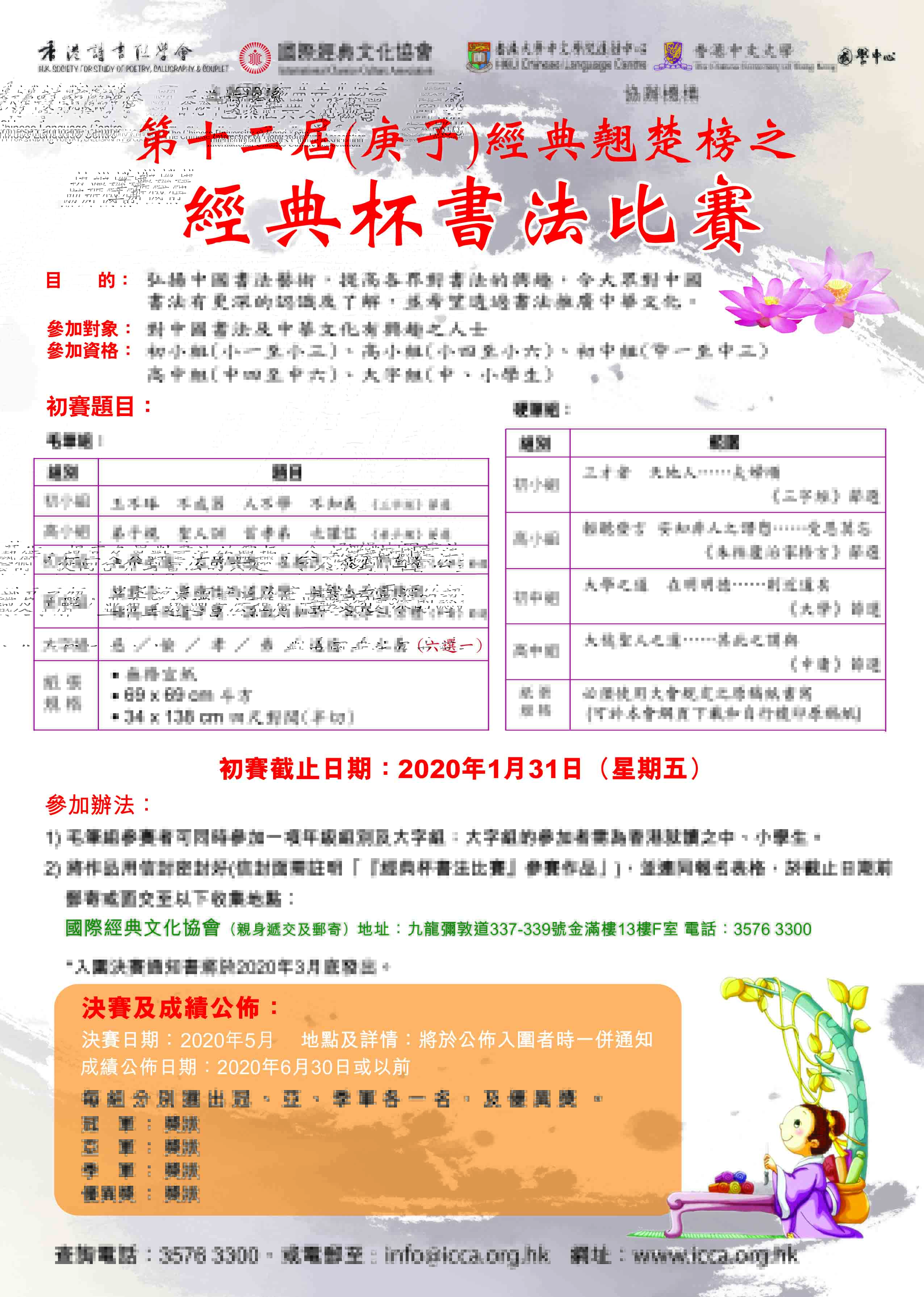 2020 第十二屆(庚子)「經典翹楚榜」之 「經典杯」書法比賽